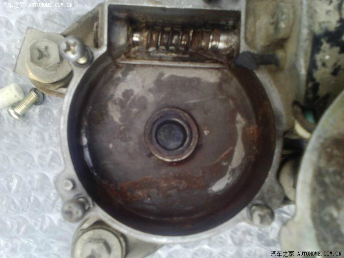 这是取出旧齿轮的样子,下面锈了,水是从中间的空里渗入的,里面也有,因此绉了,造成转不动。用砂纸清理。