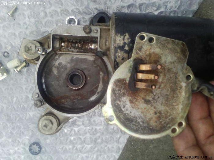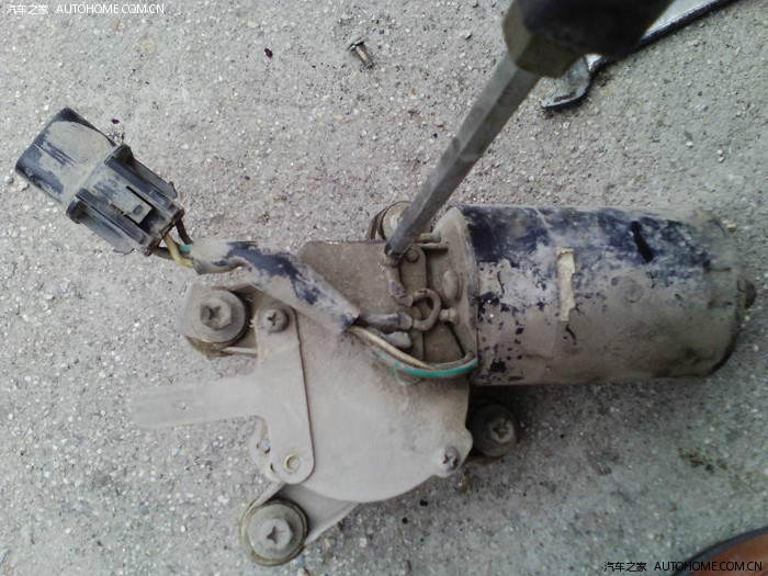 没装雨刮器,扣好卡扣,实验,不转。打火后再试,喷水正常,还是不转。卸开黄铁皮一侧的四个螺丝,通电后再试,还是不转,电机已经很热。(不建议大家卸开,卸开后就不能退货了)