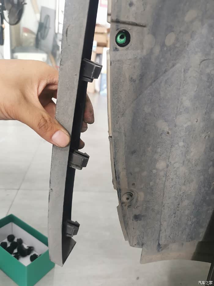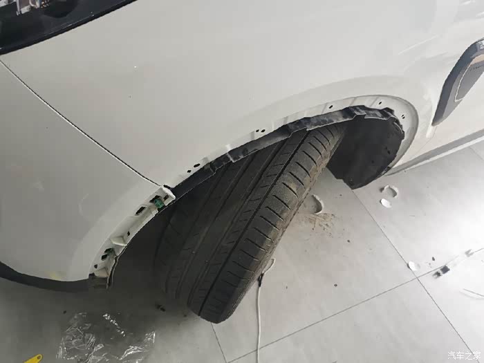 引擎盖打开,覆盖引擎仓的三块塑料饰板全部拆掉。然后八号套筒拆除固定前杠的五颗螺丝。拆除左右前轮后面挡泥皮上的螺丝和卡扣。把轮眉揭开,轮眉全部