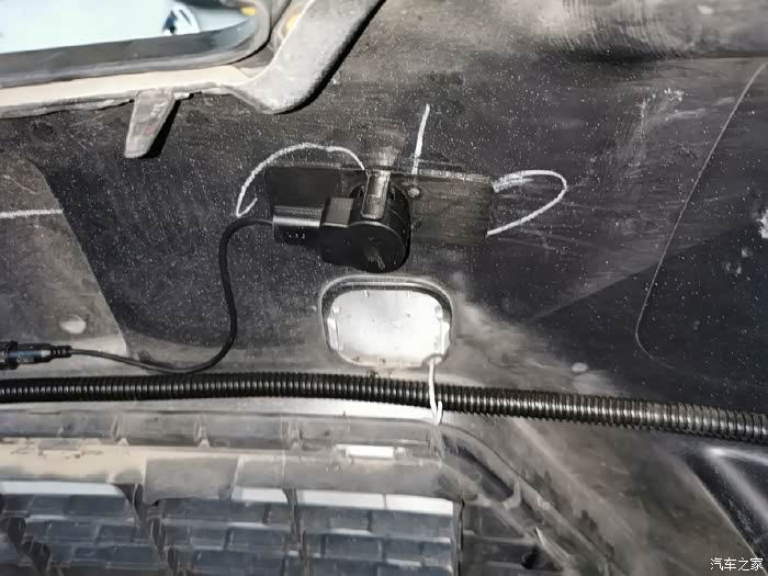探头和探头延长线插牢扭紧,探头线绑定牢固。沿着前杠走到主驾叶子板,从轮胎内称一直穿到主门下方。