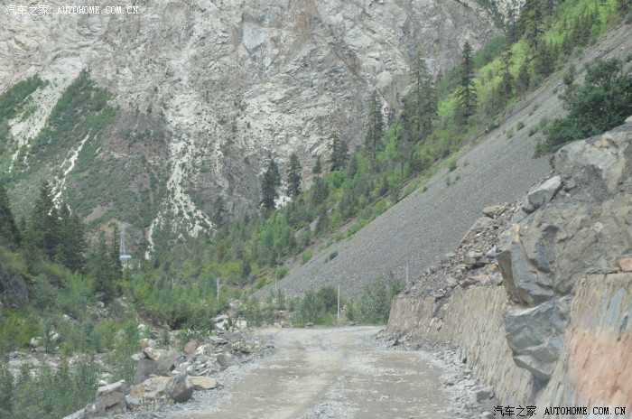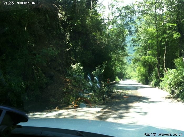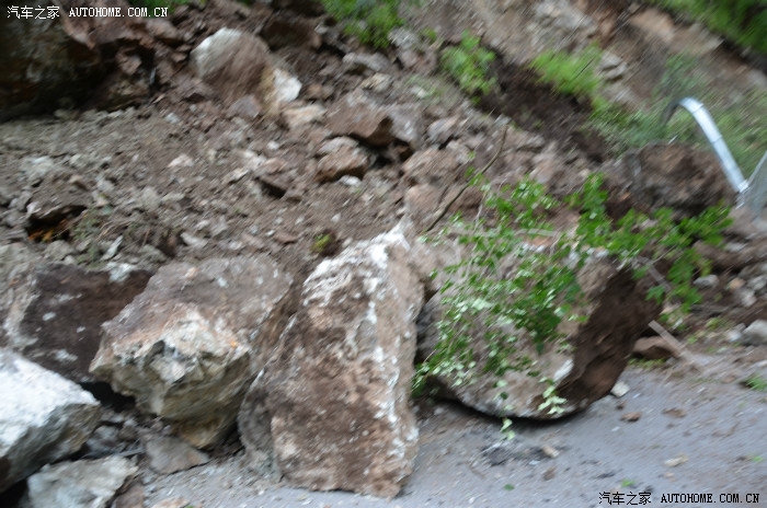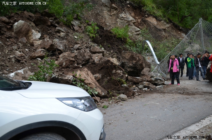 清早出发没走多远,就遇塌方。很严重!挡石护网全都掉下,估计是昨晚的雨水太大了。大石挡路。后研究一下,小车可通过。有一定的难度。我的VV就是再在这里把侧面黑护杠蹭了一点。心疼啊!