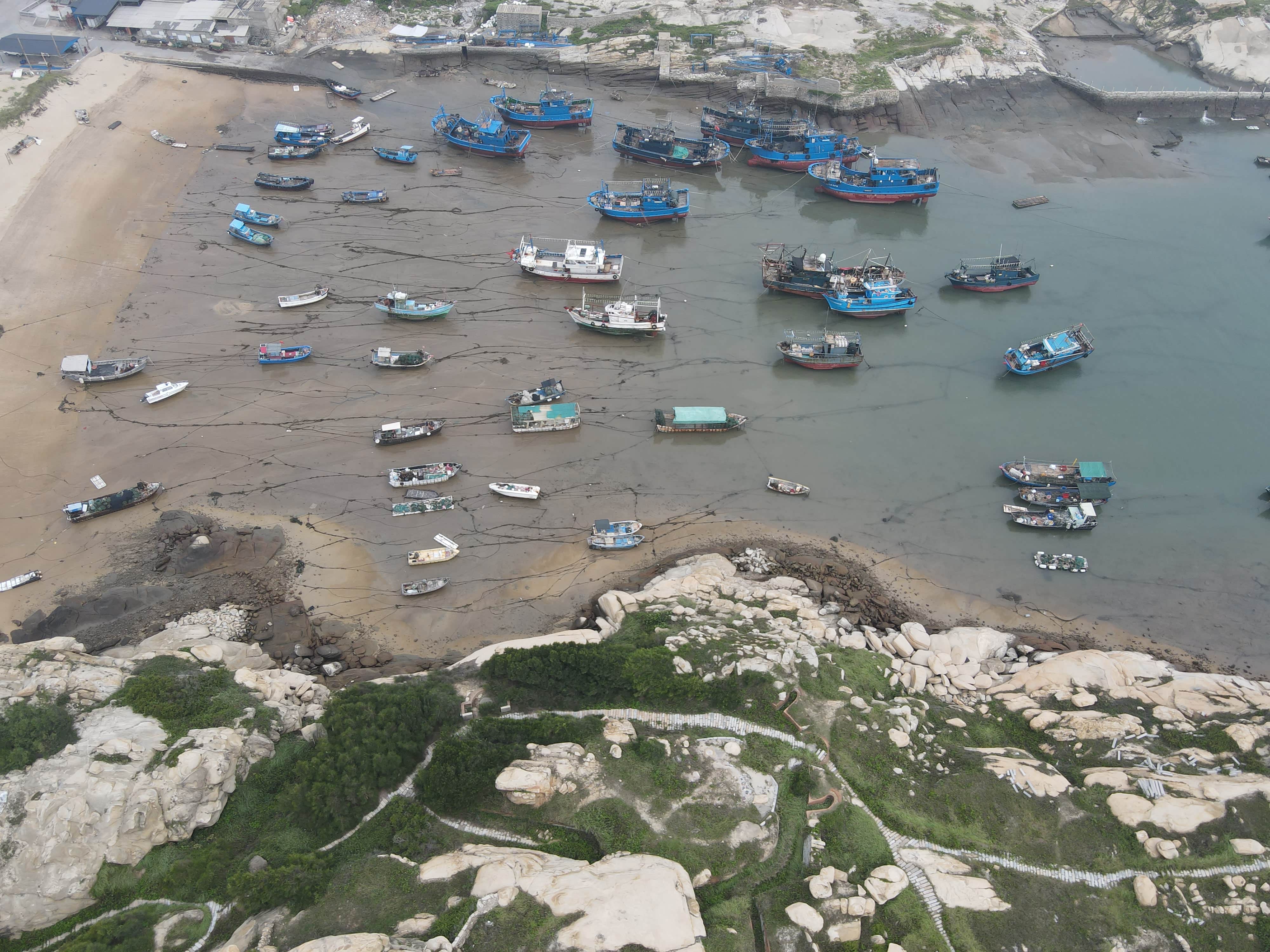 这里是海边的避风港,海边的渔船不是很多都是村里面的。