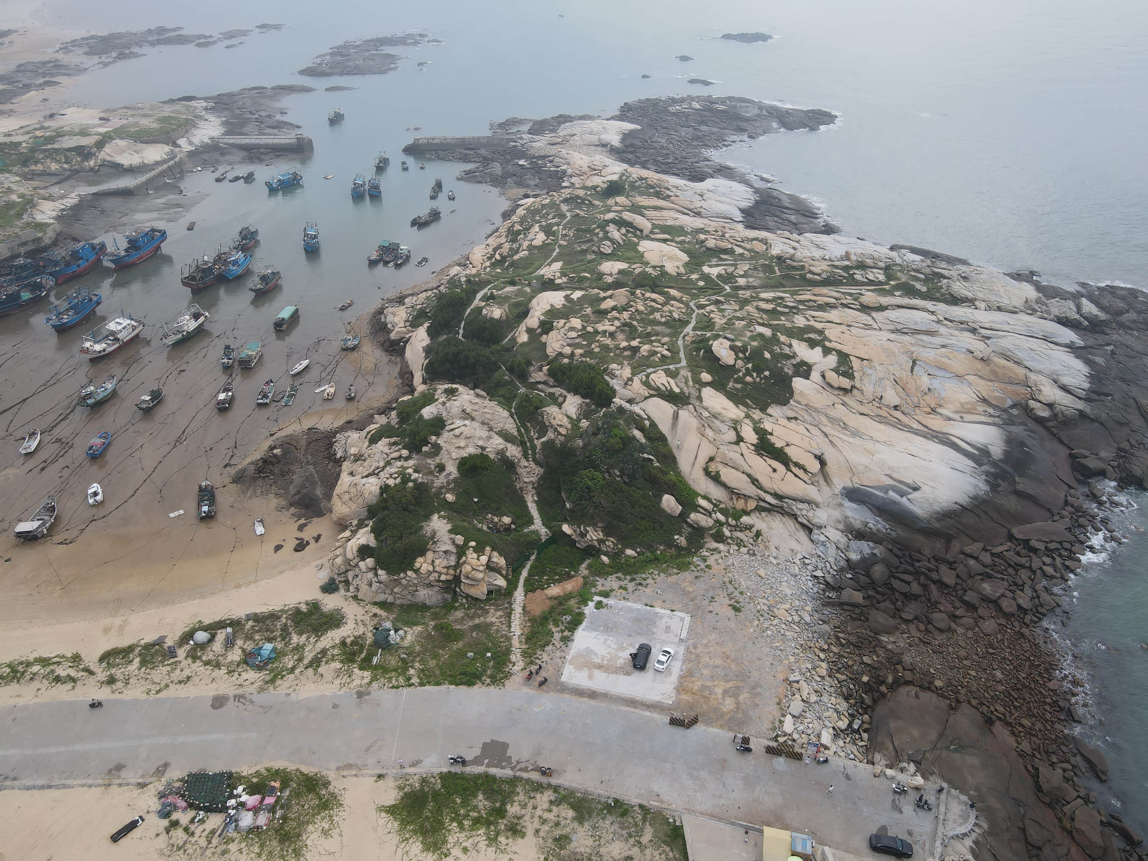 这个风景区不大,严格的来说应该算是一个观景台,观音山位于红塔湾和黄金海岸两个海湾之间凸出的岬角上,立于山上,放眼长堤,犹如一巨鲸卧于水中,所以沙堤村又有“鲸江”的雅称。
