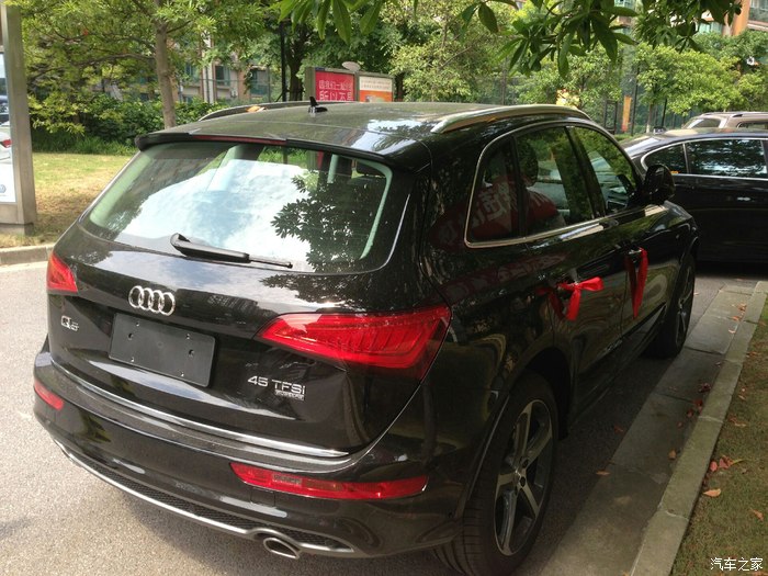 于是看口碑,发现3T口碑不错,优惠很大,赶紧打电话,找了三家4s店,第一家有辆柚木棕,但没看到车,价格也太高。第二家黑色的,但是也没有现车,销售约好的时间迟到了,我们准备离开,正好门口停了一辆来做保养的柚木棕进口Q5,觉得很好看,赶紧问第一家,竟然已经卖掉了!就一个礼拜时间,谁说进口的卖的不好?!于是找到了第三家,说港口上有辆刚到的黑色运动版。果断订车,老爸往死里杀价,估计销售都要哭出来了,说我们杀到了上海最低价。