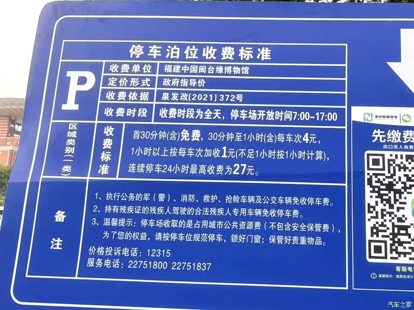 停车场是收费的,但是很便宜,以下是收费标准,大家可以了解一下。