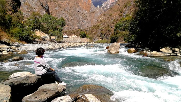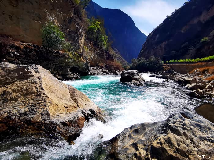 当年第一次来虎跳峡,观赏了上虎跳后,决定继续前往中虎跳,前往中虎跳的山路艰险崎岖,临崖蛇走,开车人也是战战兢兢。