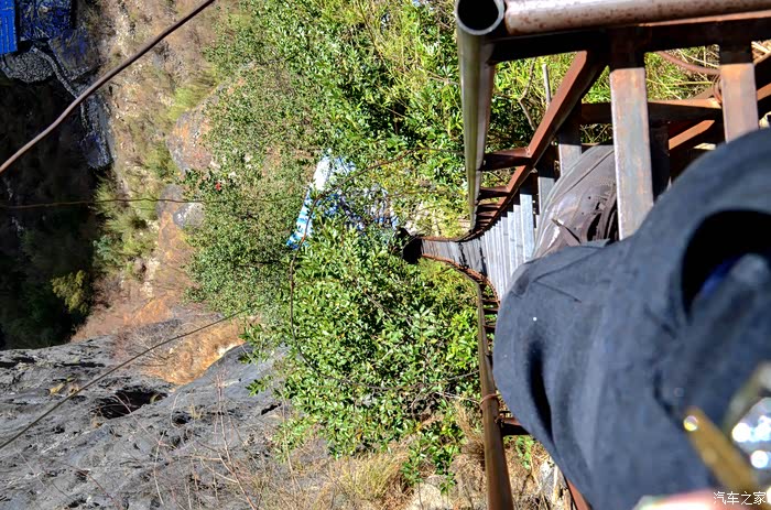离开旅行团,驱车驶上刚才隔江远望的对面峭壁上的山路.