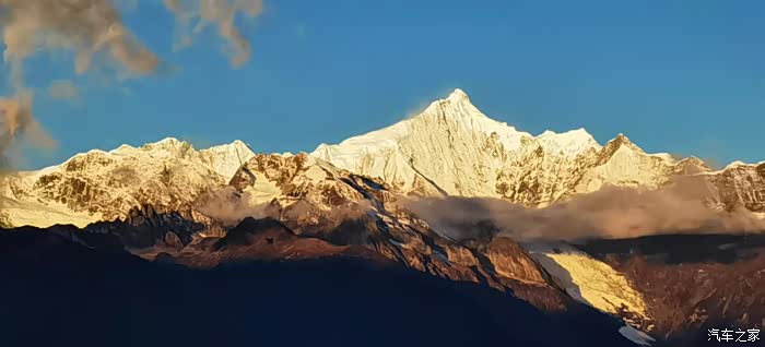 四川的朋友发来微信,他们到了索松村,看到了南迦巴瓦峰的落日金山。