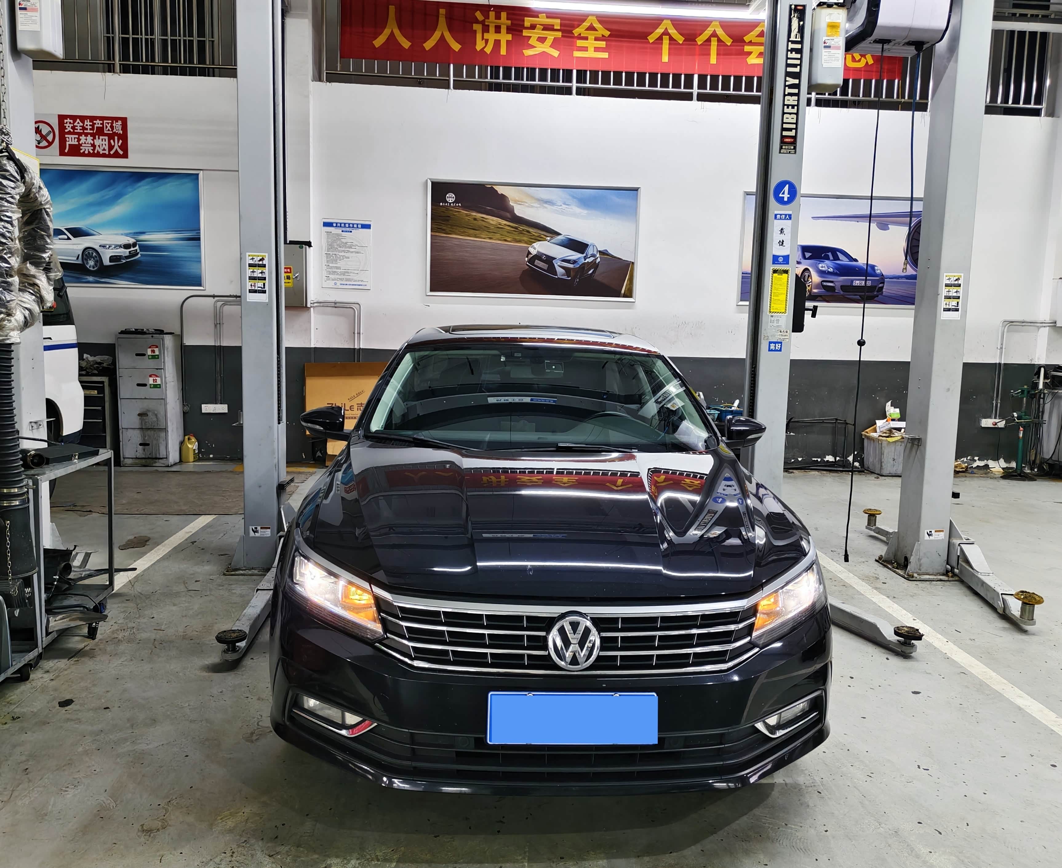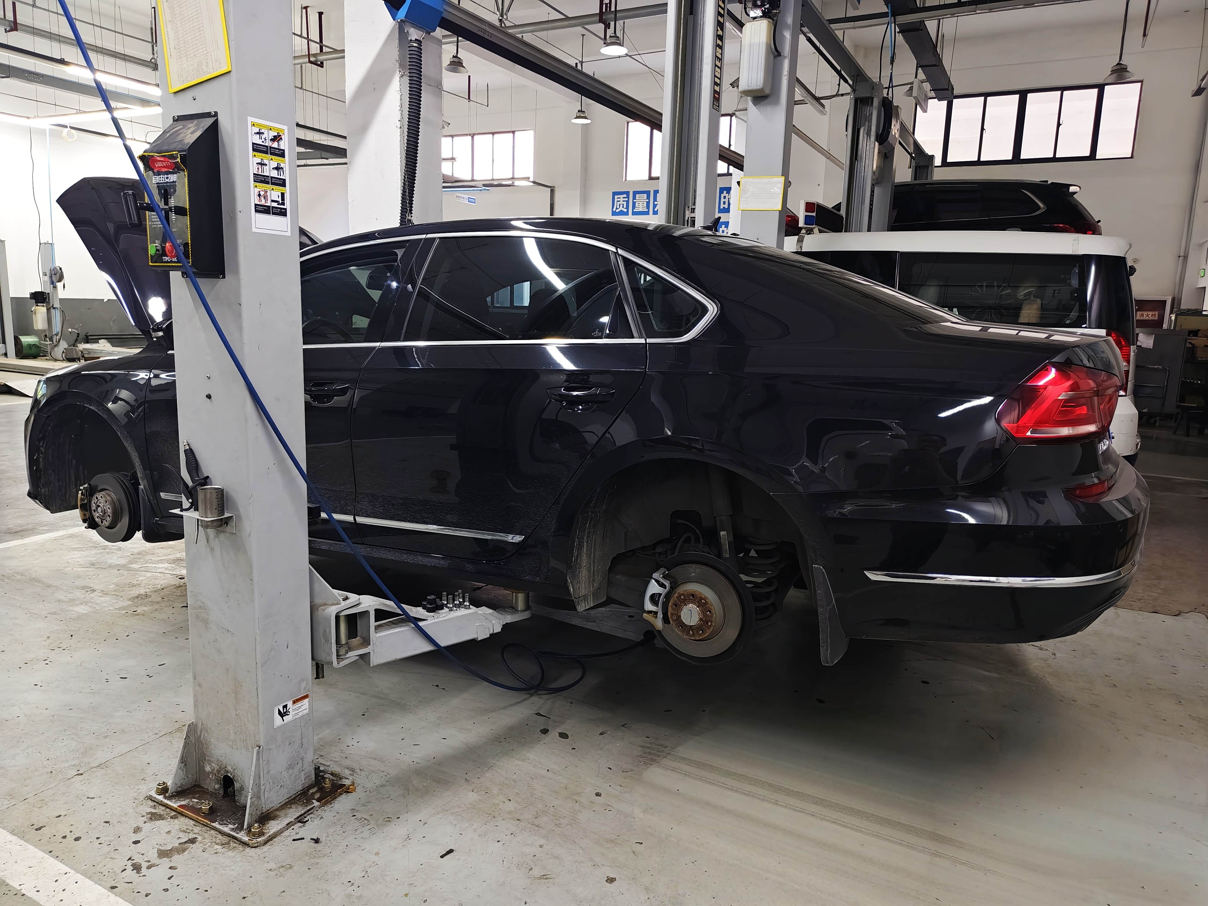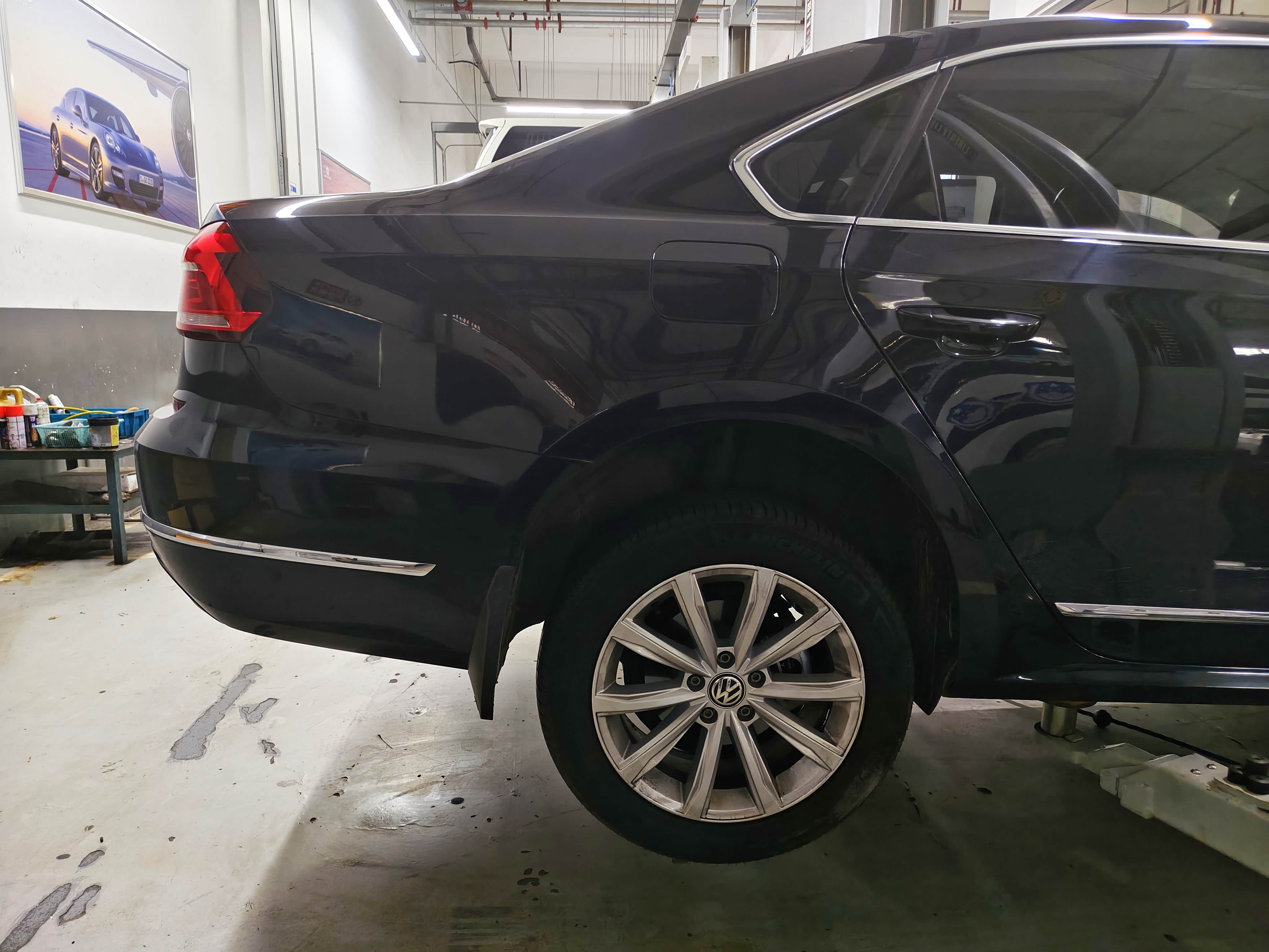 上周在外地扎了个大钉子,位置又在轮胎边缘,虽然用内侧贴片补住了,但是经常跑高速,有个带伤的前胎,安全系数还是欠缺很多,所以让师傅将四条轮胎,按X形前后交叉换位一下。帕萨特属于前驱车型,车辆在行驶中,前轮负责转向和驱动,承受的摩擦力比后轮多几倍,前后交叉换位既能均衡轮胎磨损程度,延长使用寿命,提升行车稳定性,又能减少扎钉位置意外爆胎的风险性。