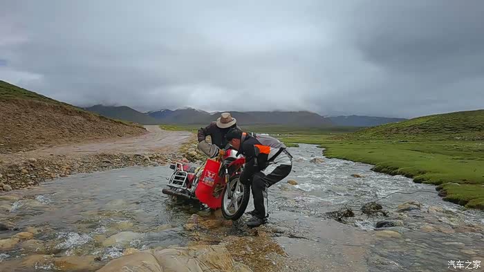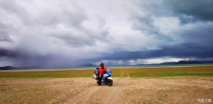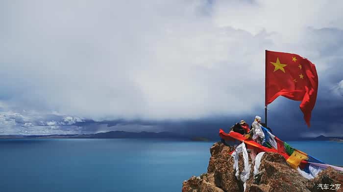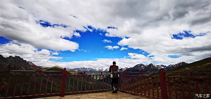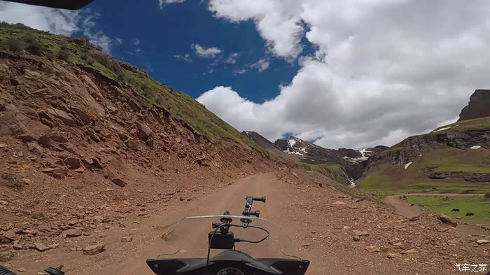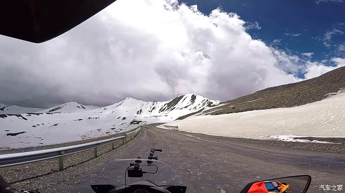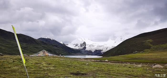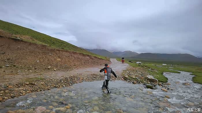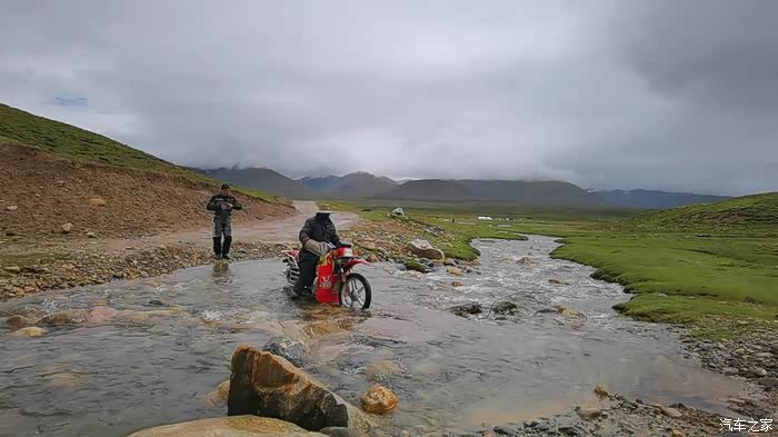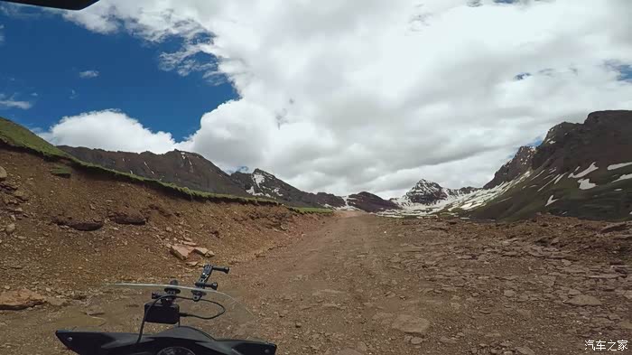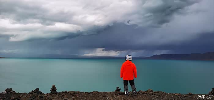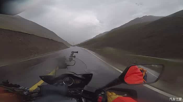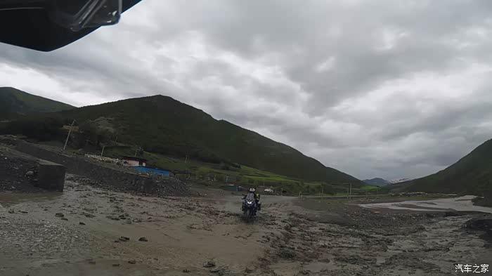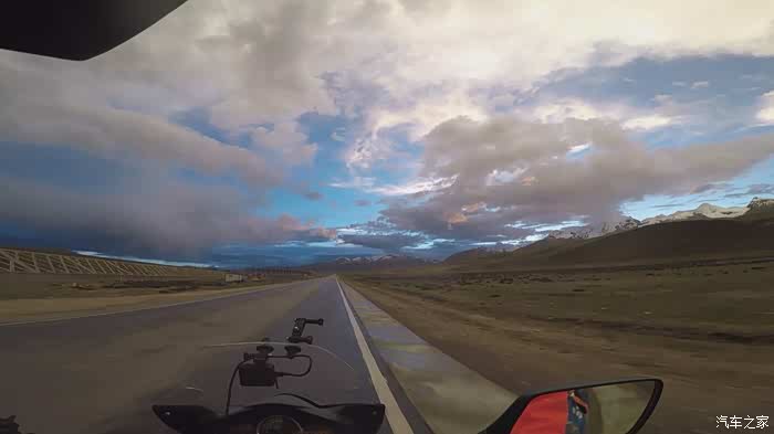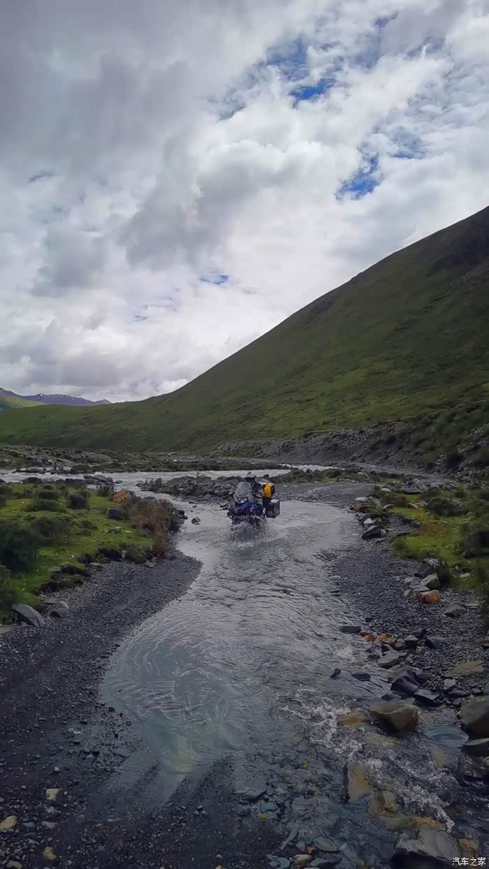 今天我们总共经历了三场冰雹,其中最大的一场冰雹中发生了一件可以让我吹一辈子牛的事,什么骑摩托车进藏?都不足以让我吹一辈子牛,你们可以想象一下会是什么样的事?旅行结束后我会揭秘。这一路真是风云变幻莫测,时而电闪雷鸣,时而晴空万里,今天的平均海拔在4500。沿途景色是我这次旅行中最美的一天,这里特别强调一下,在我们离一号目标也就是圣象天门还有100公里的时候,路边有一个不知道名字的错,当时天空还下着雨,而且风特别大,哪里刚修建了一个观景台,我们把车停上去,等了大约半个小时,乌云散去,那一刻,那个湖水泛着淡绿色,真的是特别漂亮。