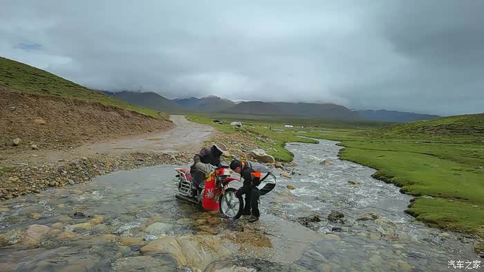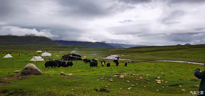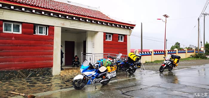 今天把人跑硬了,早上九点出发,收拾行李的时候就开始下雨,想着不会下的太大,而且已经给骑行服加了防雨内胆,结果骑了十分钟,雨越下越大,随便停在路边就赶快穿雨衣,当我们赶到索县吃早午饭的时候,天气居然晴了,内心小小的窃喜一翻,简单吃了饭加油继续赶路,离索县30公里,有一条小路,大约60公里可以到达比如县,如果此路不通,那么我们将要绕道那曲,为此多跑350多公里,多年前我的偶像曾跑过这条路,说路况很差,不论是百度地图还是高德地图,都不推荐,除非选择骑行模式才会有。于是我交代他两这段路要跟紧点,我们都不知道路况,结果刚开始的25公里非常非常好,全是柏油路面,几乎没有几个人,偶尔可以遇见路边搭着帐篷的藏族同胞的“家”,我起初以为是导航公司偷懒,没有更新这条路。