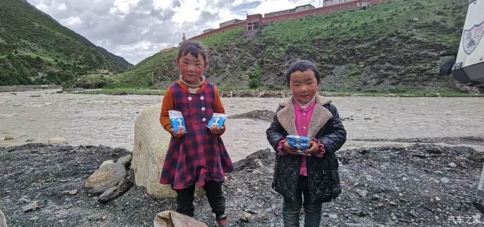 今天是我这些天跑的最累最累的一天,虽然路跑的并不多。早上九点左右没有吃早点就出发去往萨普神山,刚开始十公里路不错,我听着音乐慢悠悠的在最后跑着,忽然路边有个藏民同胞给我一边挥手一边指向旁边的一条小路,用不太标准的汉语说:萨普走哪里,萨普走哪里!我都扇过去三四百米了,直觉告诉我应该过去问清楚,所以我就调转车头过去问清楚,他告诉我,去萨普应该走那条小路,我心里纳闷,他怎么就知道我要去萨普呢?我赶紧给他们两个打电话,让他们赶快掉头回来。等他们的时候,我把出门时J总给我的两箱你奶拿出来给两个孩子每人两包。在我坐在路边休息等他两时,才发现一个很不起眼的地方有一个很不起眼的牌子,写着萨普二字,然后画了一个箭头,真是郁闷。