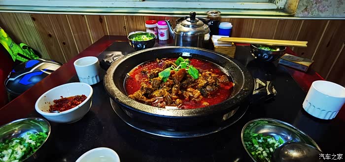 休息到差不多六点半,开始启程赶往康定,一路景色秀丽无需多说,路况一般,车多。jl联系了一家客栈,我们八点钟赶到,老板人不错,我们说想去市里转转,就直接推荐给我们一家当地有名的地道的牦牛肉小餐馆,我们三个人点了个中份,结果不够又单点了一份肉,今天这顿饭是吃美了,营养足。