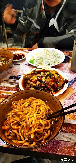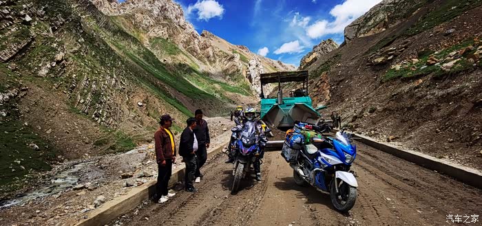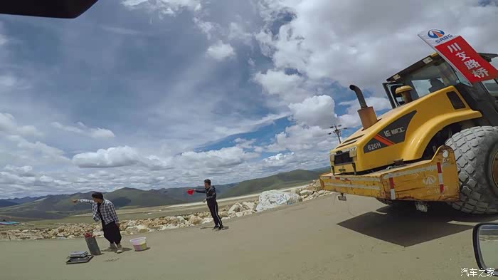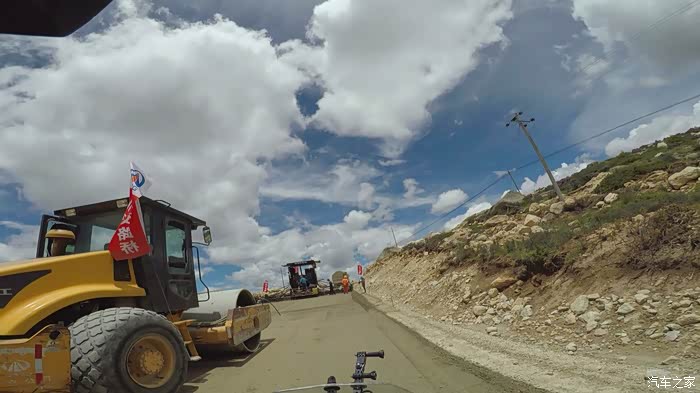 下到一半的时候,修路的工人开始施工了,铺路机把路堵得死死地,估计要等一个多小时才能通行,当时我就木了,这时一个开压路机的师傅下来,看到我的车牌问我咸阳那的,我说我是泾阳的,他立马高兴的说:我也是泾阳的,中张的。妈呀,这里都遇见老乡了,分外亲,立马问我有没有吃午饭准备把他的工作餐给我,我说我们下去吃。后来他叫了三四个工人,帮我们从旁边的路基上把车推了过去,然后大喊一声老乡再见,就此别过…