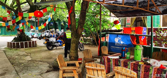 摩道通向雅安的路还是不错的,景色路况都尚可!十一点就到了雅安东升竹园,不为住店,只为去看看我第一次进藏时留在哪里的旗帜。进入东升,一切都是那么熟悉,一切都是老样子,我先去拍照,然就坐在院子里和店家聊了起来,店家说今年生意不太好,进藏的人不多,我们三个也在这里买了点抗高反的药物备用,jl买了两瓶氧气,我告诉他能不用尽量别用氧气,后来他把这两瓶氧气一直带到了拉萨。我给yq说要是讲究的话,可以买一个进藏图,那种在布上面印的地图,然后没到一个地方给你盖个戳,拿回家挂起来,y听了以后,兴奋的立马就买了一个,第一个戳盖的就是东升的。