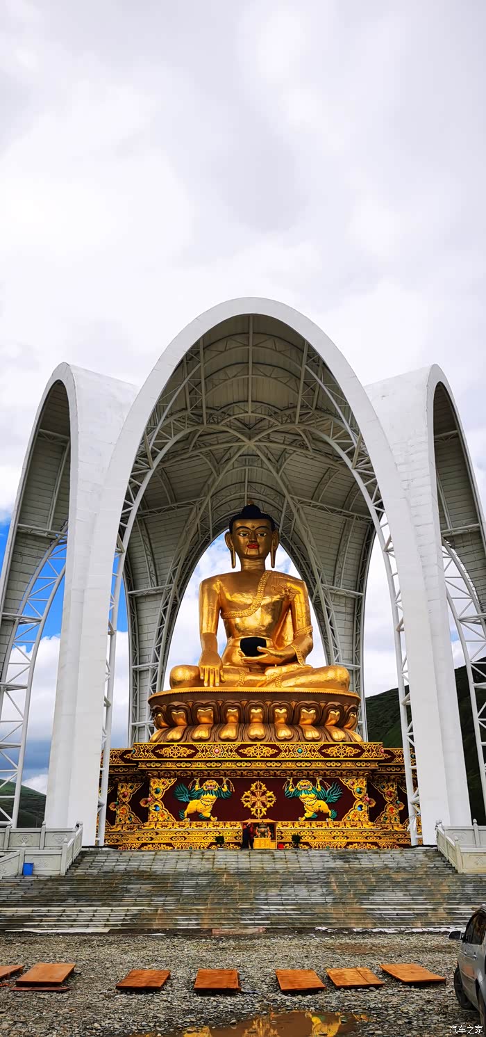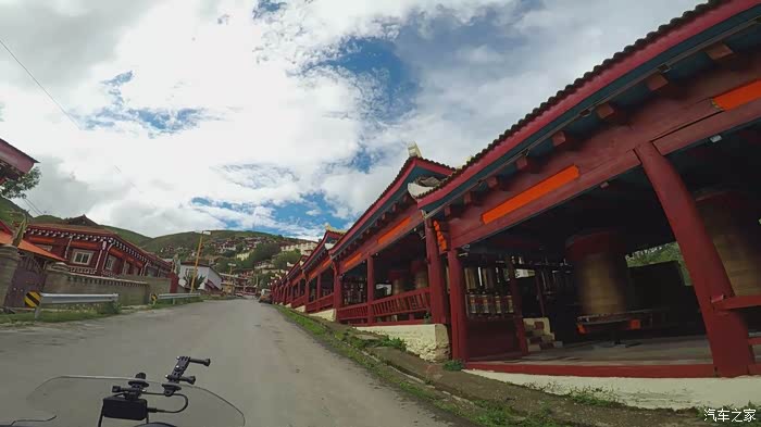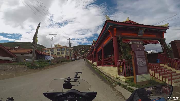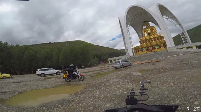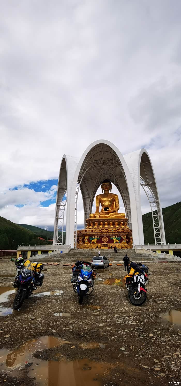 在我们快要达到道孚时,大老远就看见一座很大的佛像,然后我就想过去看看,顺着路走,结果第一次没找对路,折返过来后总算找到了地方,拍了几张照片,在佛像的附件有一座寺庙,问了一下当地人摩托车可以骑上去吗?他们说可以骑上去,然后我们又去了寿灵寺转了一圈,最后给车加满油继续赶路。