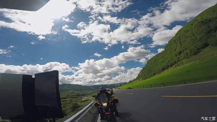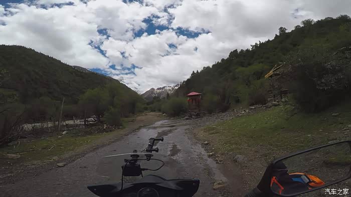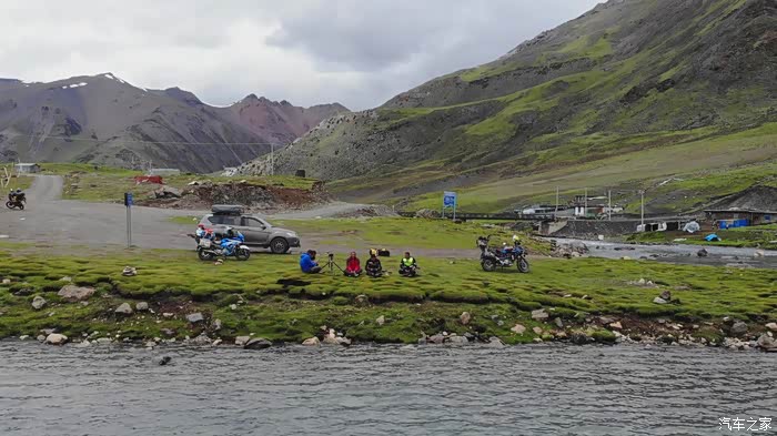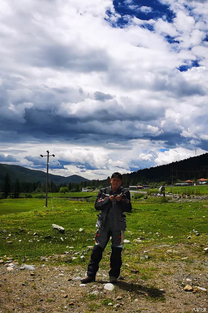 一口气干到炉霍,在炉霍短暂休整后出发卡萨湖,一路下着小雨,我真担心天气不好,可是结果却很意外,不仅仅天气好,拍的照片更是各种美。到了卡萨湖的岔路口,我们没有着急的进去,而是跟着导航先到卡萨湖观景台去转了一圈,半路上有个地方感觉适合拍延时,我便把摄像机悄悄的藏在路边的草丛中,让它慢慢拍着,我们接着去观景台。观景台的管理员人不错,说对摩托车不收费,我们把车停好,然后对观景台管理员说,让他帮我们照看一下摩托车和行李,我们跑到观景台去看看。于是开启各种狂拍模式,能拍的都胡乱拍一通,拍的差不多的时候就到湖边一个所谓的农家乐,问问价格,五个人门票+搭帐篷总共100块,觉得合适,就果断住下。(补充一下,昨晚塔公草原搭帐篷遇见西安一对夫妇,他们开的车没有目的地,要跟着我们跑,所以我们摩托在前,他们开车在后),