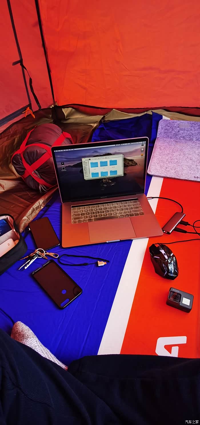 由于我出发前搬了一次家,我的帐篷死活找不到,于是就借了乐哥的帐篷,无奈他这是一个夏季帐篷,多亏我出发去多带了一个防潮垫,我把防潮垫盖在帐篷上面,加强防护,后来证明是对的,因为半夜风特别大。