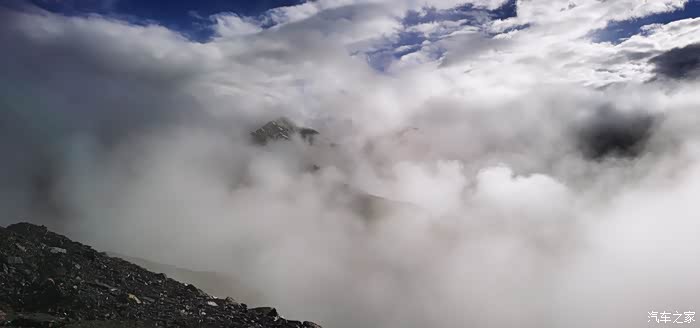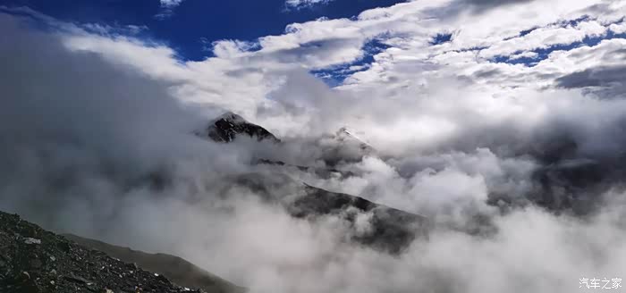 本来我们计划待到十二点返回,看着广东的大哥要等好天气,我们也就跟着等,这一等就是三四个小时。在这期间,广东的大哥告诉我们萨普神山有三个观景点,这属于第二个,第一个,也是位置最好的离这里74公里,我问Y要不要过去转转,Y说这里已经够美的了,再加上天气不好,还是留点遗憾下次来。我也没反对!在等候的这段时间里,我们互相分享旅途的美景。或者拍拍视频玩,我也忍不住的就来了个三连发的视频,这其实真的不是我的风格。但还是没忍住,至于视频内容我就不在阐述,看过视频的都知道,后来我们打算三点返航,两点半我拿出无人机拍一段航拍。结果刚拍完无人机,天空露出一线晴朗!我们抓住那一刻,仅仅是一刻的时间,萨普神山露头了,我们拍了两张风景照就开始返航!
