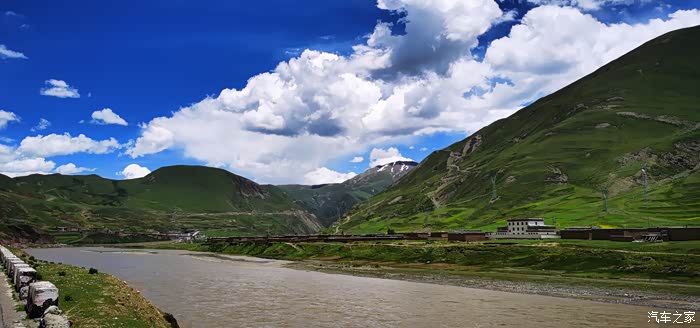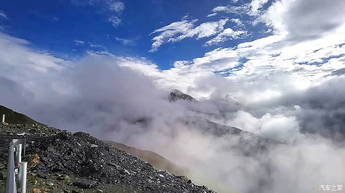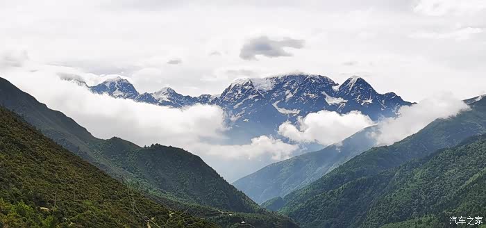 一切收拾好,告别卡萨湖。一路向西,快十一点到了甘孜,早饭午饭一起吃了。刚离开甘孜的时候,路况不错,景色也很不错,左手边有连绵不断的雪山被白云围绕,若隐若现,很是美丽,不过如若知道后面会经过雀儿山冰川的话,这里的景色就稍显逊色一点点,只是一点点。