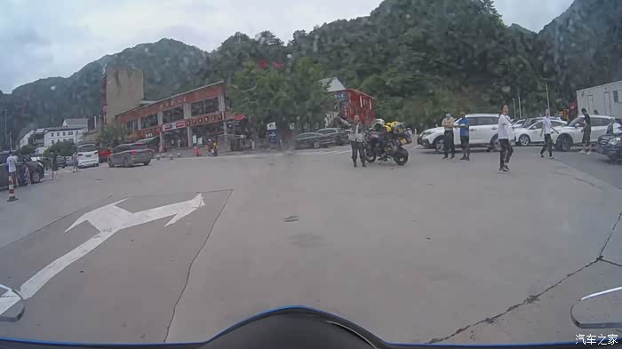 四点半到了比如县,我们找了一个广场休息,我马不停蹄的赶快做视频,然后隆重的发布出去,效果目前看着还不错,反映不错。一切做完又把前两天买的西瓜吃了。接着我们三个商量一下下来的计划。目前这个时间去二号目标有点晚了,最后我们商量吃个饭,然后在二号目标附近找个地方休息。我们找了一个陕西面馆,渭南合阳人开的,我们三每人吃了一碗面。顺便和老板打听了一下情况。老板说二号目标附近有住的地方,路况也不错。我们信以为真,还没出发就下起了中雨,路况特别特别烂,我这么给你形容一下,路基还算硬,只是上面有土,而且被车压的很瓷,那么这个时候遇见水会是什么结果?那简直就是润滑剂。骑行在上面如履薄冰。想避窝子?告诉你,那是你想多了。只要顺着惯性慢慢跑,别打方向,即使前面是连续的炮弹坑,我也只能直上。好心疼我的车车。就这样,挂着一档在雨中骑行了差不多一个小时,快到一处山顶的时候,我们穿出云层,突然出现一种很美的景象,我立马停车,先拍了一段视频,当我把Y叫过来准备给我拍照的时候,那种景象消失了,云又把我们包围,雨又接着下了!就是那一二分钟的时间里,我拍了一个30秒的视频。