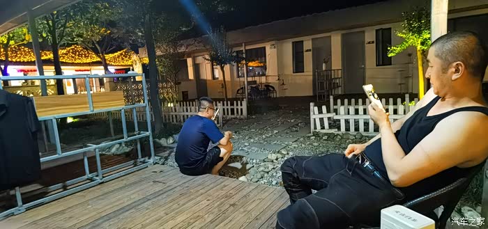 感觉拍的差不多了,就赶紧开始搭帐篷,本来他们不让我们把摩托车放在里面,说把草坪压坏了,我们这这里风大我们要用摩托车档风,而且我们的行李都很多,来回取不方便,他们让我们把行李取完之后把摩托车挪出去,后来经过我的一番交涉,每个车给他补十块钱,让我们就把摩托车放在帐篷跟前。一切弄好,在帐篷跟前有一个亭子,里面有沙发和茶几,yq把他的军用自热干粮给我们每人热了一袋,可是我吃了一半吃不动了,主要是我有点挑食,可是我还是有点饿,于是跑到他们房子里买了一桶方面一根火腿肠将就的吃了。