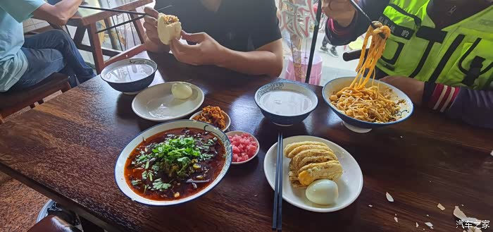 差不多快十二点,我们三个在这里第一次正式的合影留念。然后我说我们一起吃个饭吧,假期快结束了,我要先走一步了,我说这顿饭我请你们两位兄弟,谁都别和我抢,可是最终还是让Y把钱开了。期间我们聊了很多,我感谢二位兄弟的这一路的陪伴,而他们却说非常感谢我这一路的带领。我说我们彼此都是相互的,你们陪伴我这一路,我带给你们不一样的第一次进藏。回想当初,我问他们,当初是谁第一个决定跟我走的?Y说:哥,当时在秦岭服务区和你相遇,只是和你聊了十分钟,我就决定跟你走了,如果不是跟着你,我们的西藏行也不会这么精彩。我说:你们知道吗?你们的第一次进藏已经可以秒杀大多数第一次进藏的人了。因为第一次进藏往往都很保守,只求平安归来,而你们第一次进藏,跑的地方,许多跑了两三次的人都不一定跑过。他们非常认可我的话。跑到第二天的时候我曾对Y说过,你跟我跑完这一趟,你在你们哪里肯定火了,事实也就这样,前几天y就对我说:他在他们单位已经火了,许多人已经蠢蠢欲动,准备自驾游,在不断问他的线路和路况,许多人每晚都在等他的更新,他的朋友圈的照片,抖音也吸粉不少,他是他们县第一个骑摩托车进藏的,而且跑的地方许多人连听说都没听说过……最后我说你们返程的时候路过西安,记得来泾阳看看我,我在泾阳等你们。