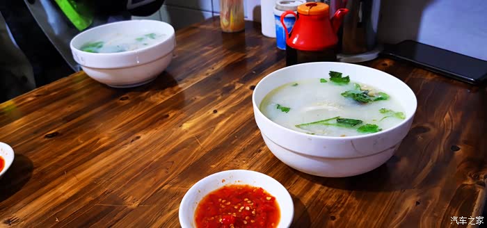 从今天开始,行程变的丰富起来,景色用爆美来形容都不为过。由于预计今天行程一百多公里,我们都决定睡到自然醒,可是我晚上十二点多睡的,早上六点多就醒了,七点钟我们仨都起床。客栈的老板小伙人不错,一大早就带我们去吃当地有名的早点牛杂汤,可能是昨晚牦牛肉吃的有些多了,我一点胃口也没有,随便吃了几口米线就发出了。