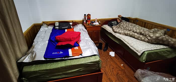 大约晚上七点半我们到了羊秀乡,这时雨停了!我们找了一家还没有正式开业的客栈,跟老板商量一下借我们一个房间,后来老板说房间没有收拾好,你们可以将就着住,价钱你们看着给。后来一看,房子里就是只有两个没开封的床垫,我们自己带着铺盖,最后按一个人30交费。今天虽然只跑了180+公里,但是由于雨天和烂路,感觉特别累!这一路基本没拍照,就是山顶拍个视频玩的有点嗨!今晚所在海拔3980。