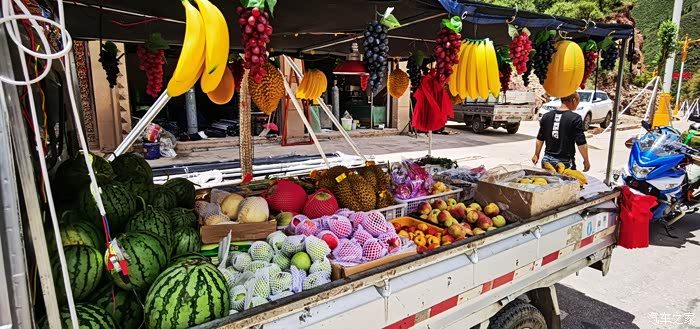 刚出泸定有个观景台不错,我们又是休息又是拍照又是拍延时,正好旁边有个卖水果的老妇人,想想几天没吃水果了,就买了几个苹果和橘子,说实话,苹果和橘子都一般,但是结合当时的情景,吃的蛮香的,长途摩旅,有机会最好吃点水果,不然身体会有一点点小问题。