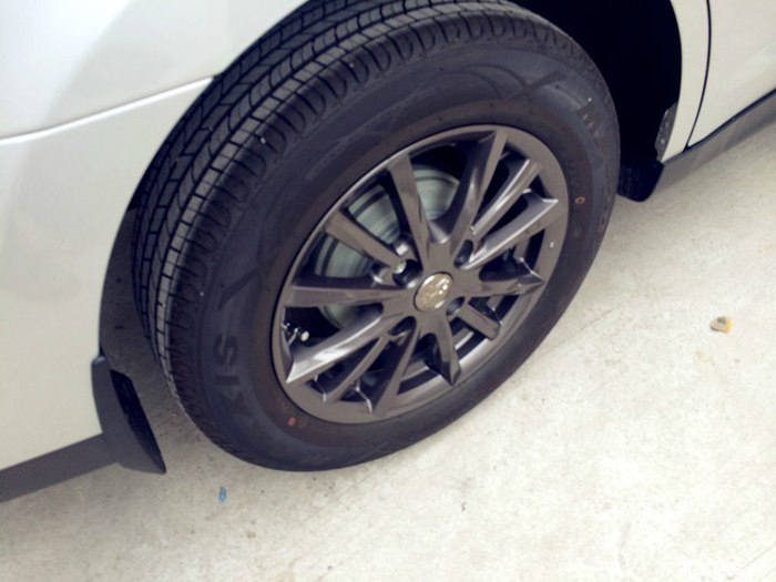 4S店送的 铝合金钢圈 个人觉的没有 五幅银色的好看 有时间改成银色的。