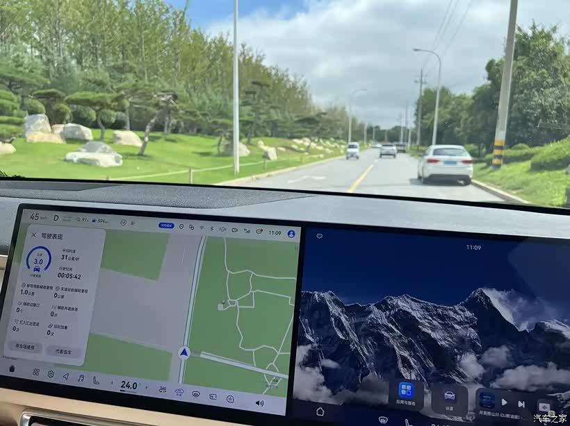 车轮碾过落叶,发出细碎的声响。这深蓝S09的电机声极轻,几乎被风噪盖过,只余下轮胎与地面接触时的沙沙声,颇有些“此时无声胜有声”的意味。车内空间宽敞,座椅包裹性极好,长途驾驶竟也不觉疲惫。中控大屏上,导航指向今日的目的地——杜邑遗址公园。