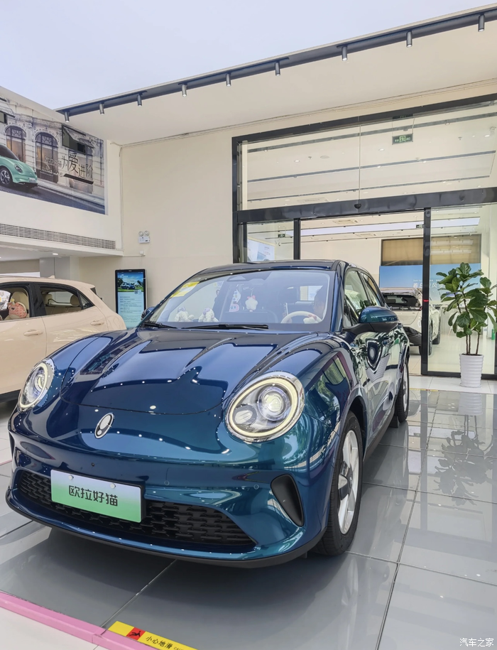 一进门就看到粉珊瑚和璀璨绿两种颜色。不得不说,璀璨绿还是更加符合我的审美。颜色看起来像夜晚的星空,深邃神秘。绕车转了一圈,车身大小没什么变化,唯一比较明显的升级是前脸的格栅变大,两侧加了导风槽,应该是为了降低风阻。感觉25款好猫比24款看起来酷一点。