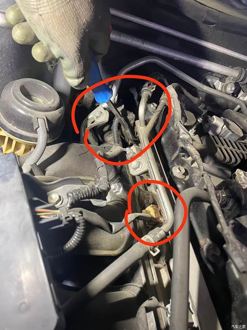 先换喷油嘴胶圈和凸轮轴传感器密封圈,这两个老化了容易渗油。要是下面那个传感器不确定的话,擦干净跑几天再看渗漏点更准。