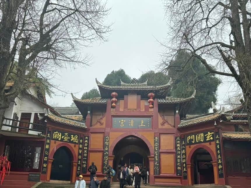 9点从成都出发,1.5小时到青城山。前山门票80元,索道上山(60元/人),省去爬山的累。上清宫的红墙爬满青苔,老君阁能俯瞰整片竹海,风一吹,竹叶沙沙响,像在说悄悄话。