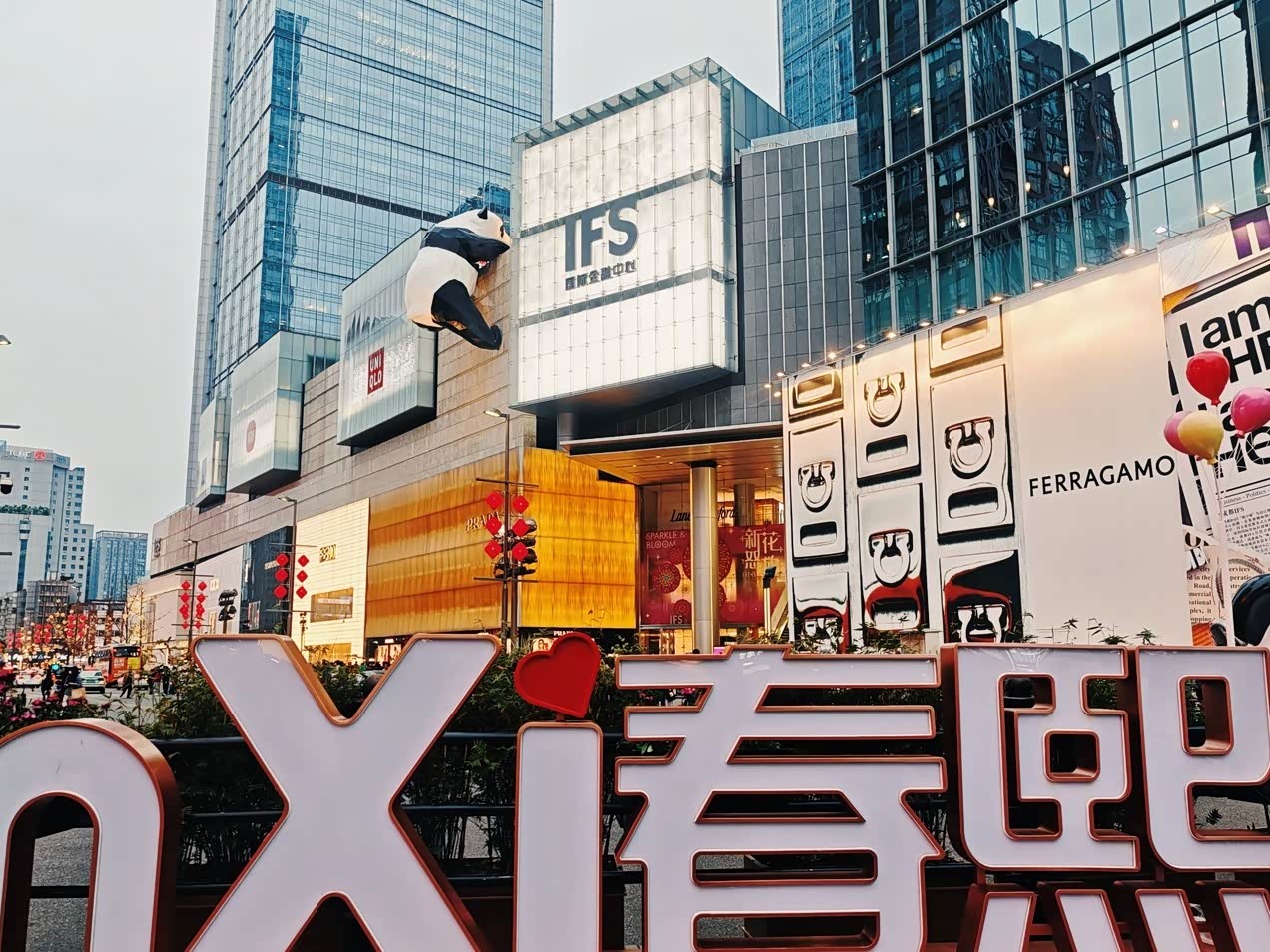 早上到成都,放下行李就直奔春熙路。IFS楼上的爬墙熊猫早成了地标,排队合影的人不少,找个仰角拍全景,能把熊猫和背后的高楼都框进去,瞬间有了“传统与现代撞个满怀”的感觉。