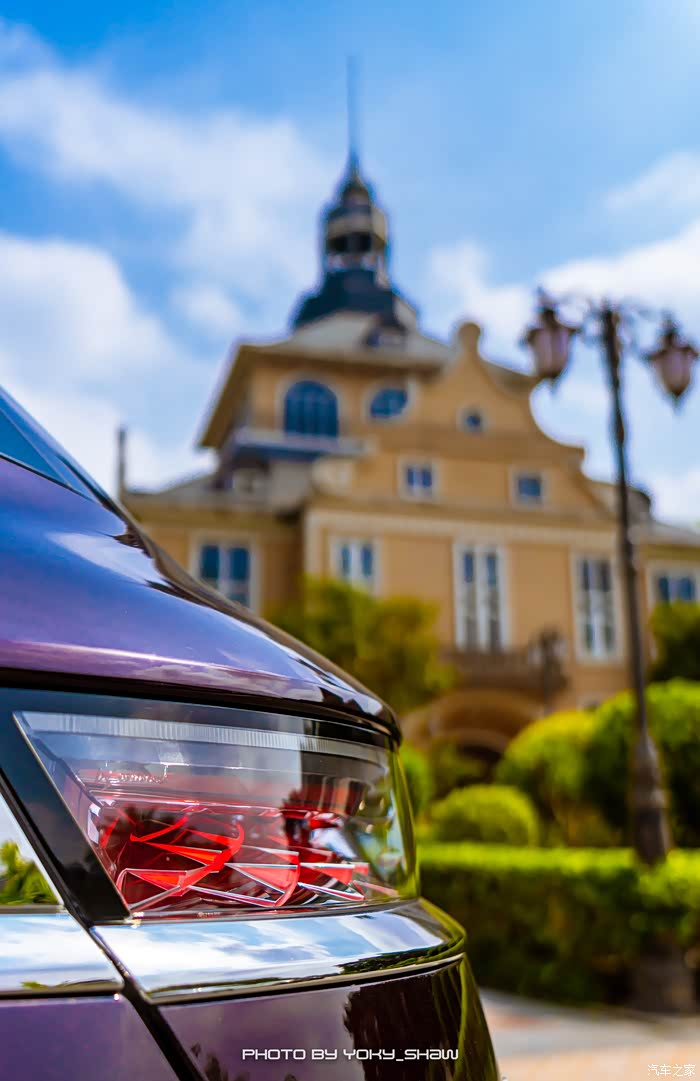 而整台车子最吸引人的地方莫过于她的巴黎之光大灯,开车以及熄火的时候可以看到前水晶大灯180°的旋转,真的是很有仪式感。驾驶者也可以感受这满满的仪式感,在地下车库或晚上,按钥匙就可以在开关锁的时候看见旋转的水晶大灯,并且还伴随着紫色的光芒。
