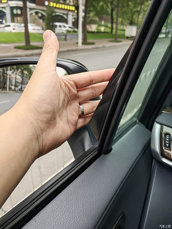 5.于是将风刀试着贴到了下图这个位置,刚好有玻璃,刚开始只贴过一个,其实作用已经很明显了,但是可能由于风刀本身不太大,感觉个别地方还是相对有点风噪,于是最终甚至又贴了一片,贴完之后感觉把绝大多数原本打上侧窗的气流全给导去外侧了,现在跑到120,风噪当然还是有,但是绝大多数都是每个车都会有的风噪,此前呼呼的漏风声已经大大减少。