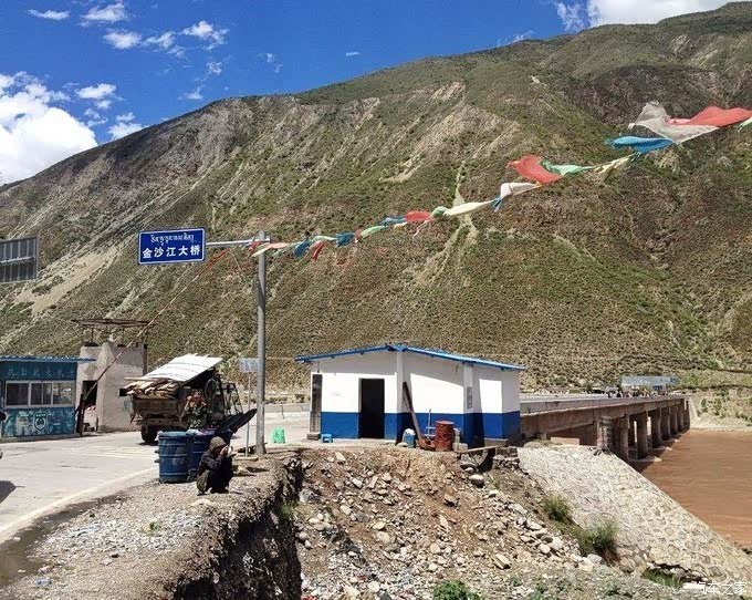 开了30公里就大了竹巴龙检查站,这是进藏前的最后一个检查站了,过了就是 金沙江 大桥,其中桥的一半是 四川 ,另一半就是 西藏 了