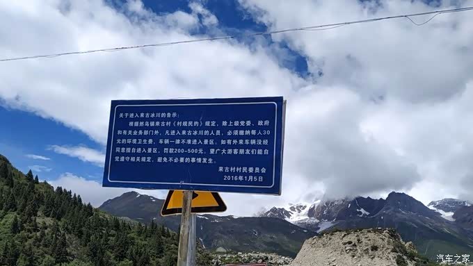 但是很遗憾,除非住在里边,否则车不能开进去,在门口停车要走路进去,大约走1.5小时,门口很多游客都尝试着说服看门的藏名,但就是不肯让进,考虑到海拔高,往返走3个小时体力肯定吃不消,就没有去了,其实很多游客都没有去,个别体力好的进去了。