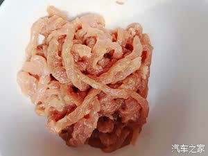 油温180℃时(高于180太多时等油温下降),加入肉丝,用竹筷滑散。