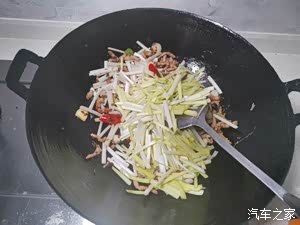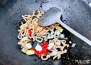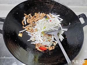 3、老川菜菜谱中韭黄肉丝的辅料很简单,仅冬菜或芽菜,我喜欢加入泡椒、葱姜后的味道;