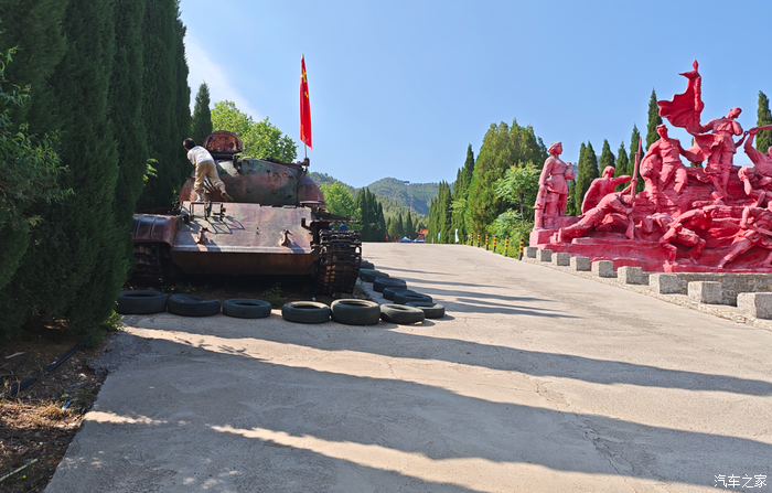 去马鞍山之前,只知道是红色风景区,关于马鞍山的故事却一点都不知道,也没有提前坐过攻略,但是一进景区就有了氛围,因为从景区大门到索道售票处这一段就有不少标语,尤其是还有一辆坦克放在门口,不少小朋友都在和坦克合照。
