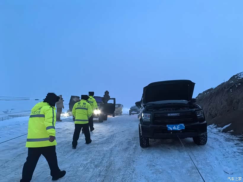 晚八时三十分左右,在数十道车灯照射下,众人如释重负,那台侧翻的哈弗H5,终于被稳稳拉上坡顶,送上了等待的板车。灯光照亮每一张冻的通红却洋溢着笑容的脸。悍五、蓝天,以及其他车队的朋友们,相互致意,儿子娃娃,无需多言。