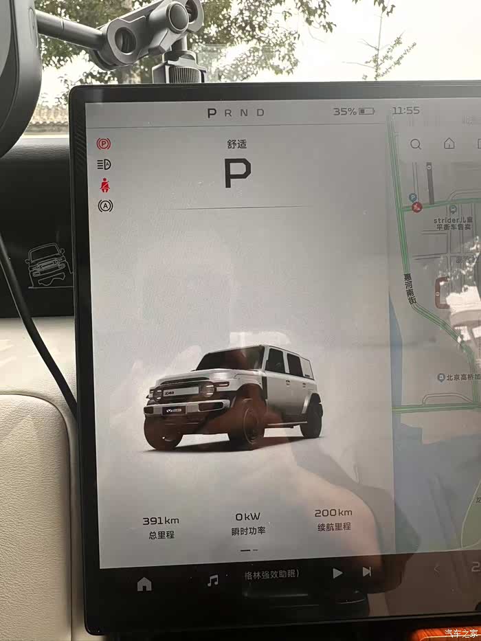 没彻底跑完,那样对电池不太好,今天充电了。391 公里用了 65%的电。北京城区上下班,还可以