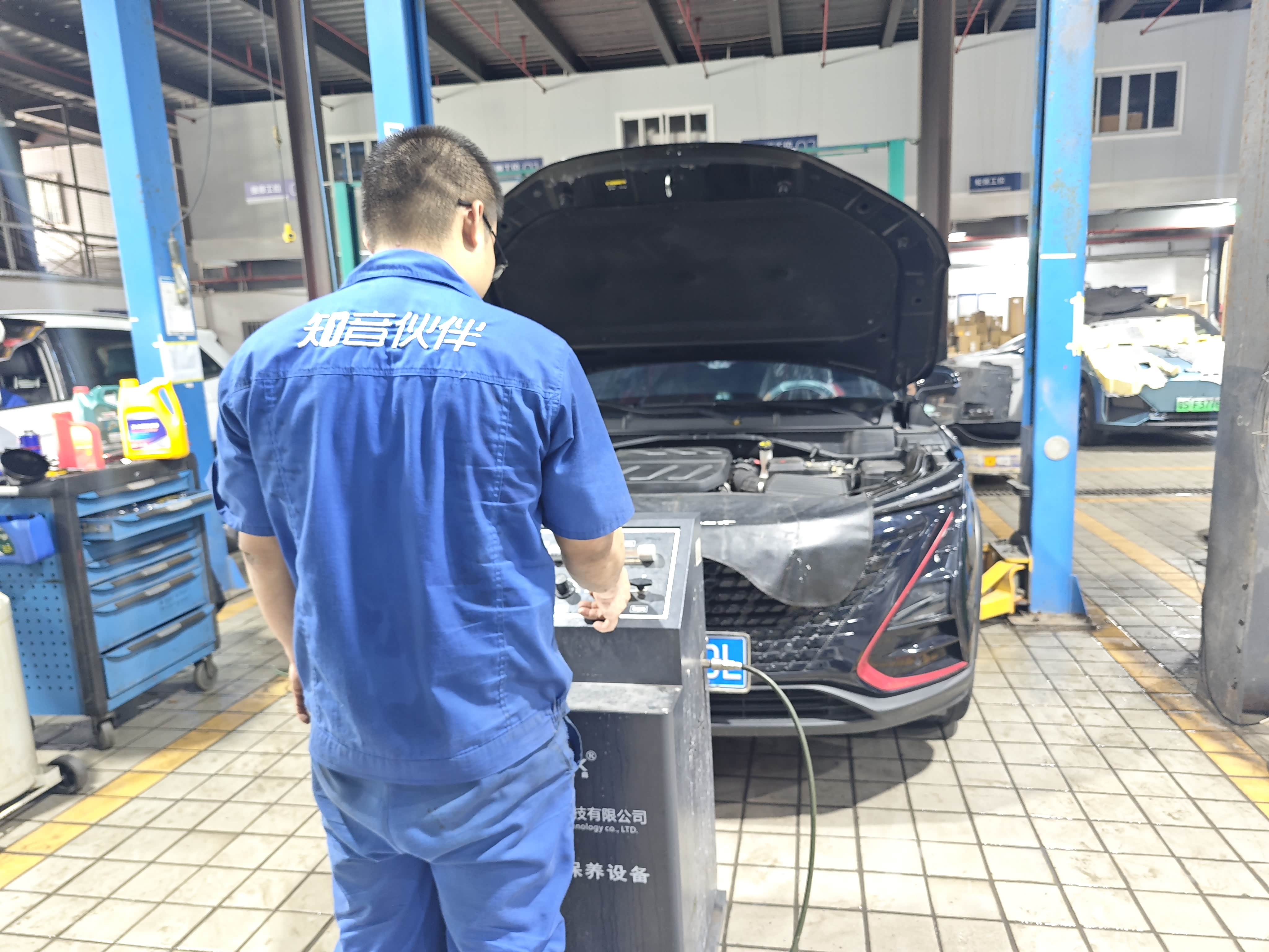 - 举升机:抬升车辆方便操作底部放水阀,家用车主没法自己弄,选店一定要看有没有正规举升设备。