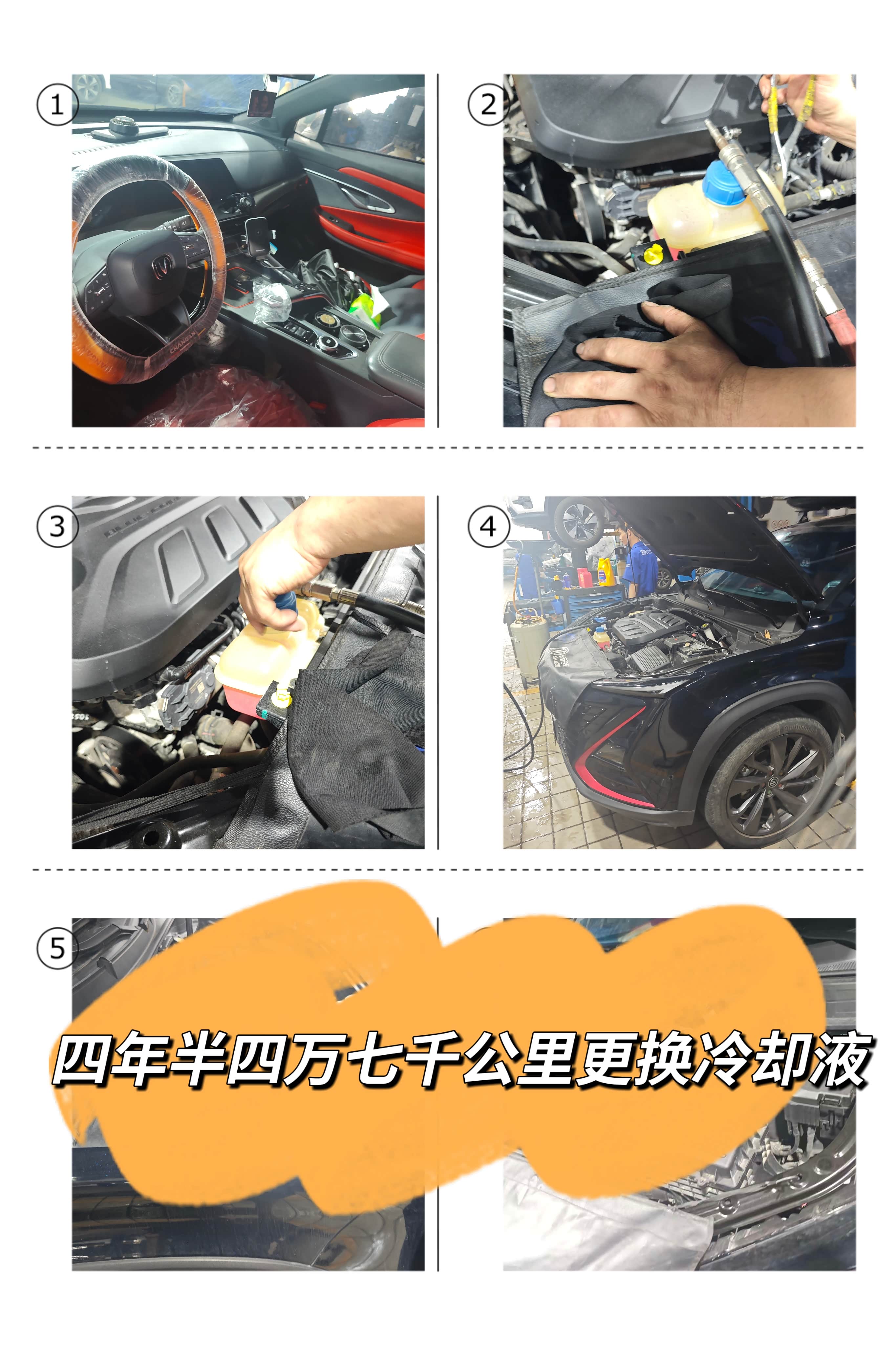 这次核心是“冷却液全套更换”,不是简单加液,4S店的流程很规范,分5步走: