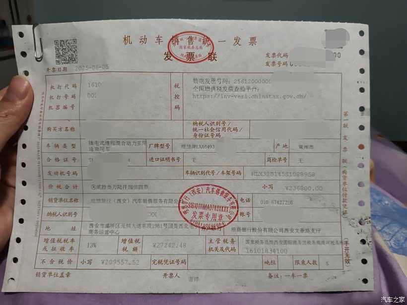 其他费用: 保险(在理想官方买的 4700 左右)、0购置税、上牌费(在理想代上牌 500)。虽然车是在重庆买的,但是销售操作在西安开的票,成功申请了西安 置换补贴 1.5w 和西安当地的新能源地补 4000 ,最后一算总账,完美落在预算内!