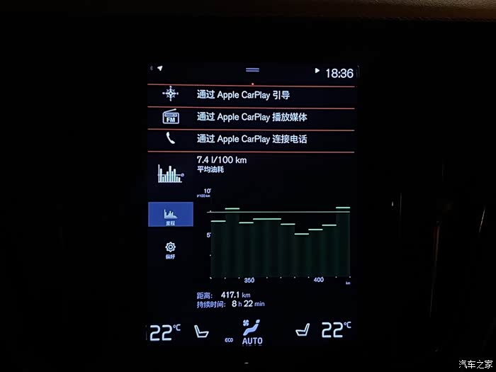 继续出发~这里说两个体验上的分享:一个是CarPlay,对于车的娱乐功能我没什么追求,所以在满足正常功能使用的前提下,Carplay对我来说是刚需,导航和听歌啥的真的很方便!不过我这老版本的S60没有全屏CarPlay是有丢丢遗憾,至于有线的方式我觉得有利有弊,弊端就是连接啥的不如无线的方便,但好处就是有线连接不损失音质而且没有延迟;第二个就是哈曼卡顿啦~虽然现在新款的S60可以选装宝华韦健了,但是有14个扬声器的哈曼卡顿我觉得算得上很实在的配置了,原车的中音比较沉,只要略微拉一拉中音和低音就很棒了。