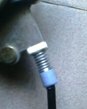 全部装好后观察电机旁边的弹簧,应该压进去一半,或将近一半(见图,比图示稍微多露出来点也行),这是留在外面的。如果你装好后,整根弹簧都留在外面或压进去很少,弹簧几乎没有压力或压力很小,说明你装的钢丝绳太长了,必须缩短,否则肯定失败。方法见上面我说的第7点。